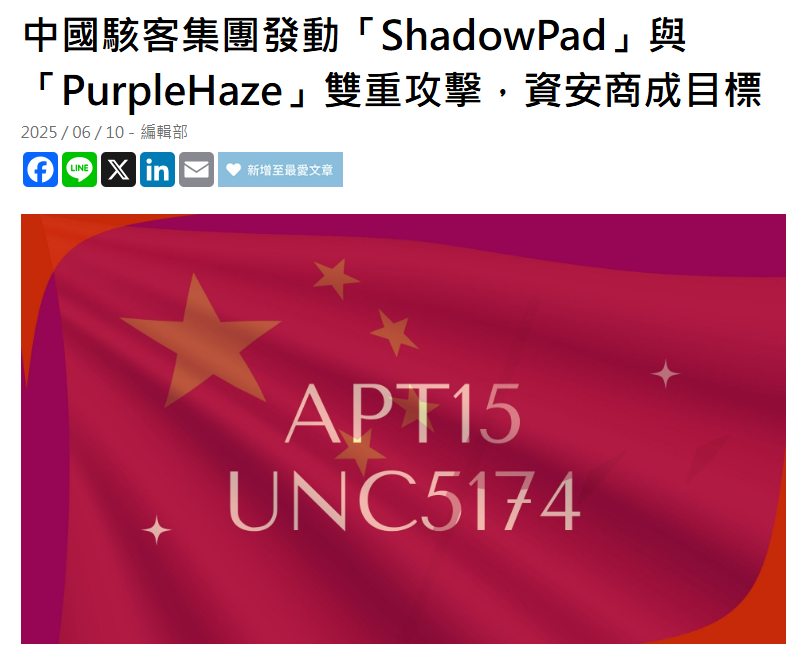網路安全研究人員揭露兩項由中國支持的大規模網路攻擊行動,分別為「ShadowPad」和「PurpleHaze」,這些行動從去年7月開始持續8個月,成功入侵全球超過70個高價值目標組織,其中包括知名AI驅動資安廠商SentinelOne。這些相互關聯的攻擊行動突顯了中國駭客組織對全球資安產業的多層次威脅。