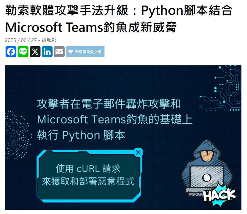 與Black Basta勒索軟體組織有關聯的前成員被發現仍在使用他們慣用的手法,包括電子郵件轟炸攻擊和Microsoft Teams釣魚,以建立對目標網路的持續性存取。值得關注的是,近期攻擊者在這些技術基礎上開始執行Python腳本,使用cURL請求來獲取和部署惡意程式,顯示威脅行為者正在持續轉型和重組其攻擊策略。根據ReliaQuest的觀察,在2025年2月至5月期間觀察到的Teams釣魚攻擊中,有一半來自onmicrosoft[.]com域名,而被入侵的域名則佔同期攻擊的42%。後者更為隱蔽,使威脅行為者能在攻擊中冒充合法流量,大幅增加攻擊成功率。